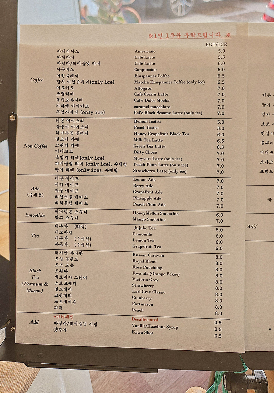 그냥 분위기 좋은 카페를 검색해서 갔으면 별생각 없이 맛있네~하고 먹고 왔을 것 같은데 저는 수플레 케이크 하나만 보고 방문한 거라 그런지 이전에 찾아갔던 맛집들보다 아쉬운 점이 있었어요. 약간 케이크가 텁텁했달까요? 거품이 제대로 안 섞이거나 밀가루가 너무 많거나 하면 텁텁함이 느껴질 수 있는데 그런 느낌이 들었어요. 그렇다고 맛없는 건 아니고 수플레 케이크 하나만 보고 가면 좀 아쉬울 수도..? 제가 작년에 방문하기도 했고 사람마다 입맛은 다르니 무조건 그렇다! 이건 아니니 참고만 해주세요 ㅎㅎ