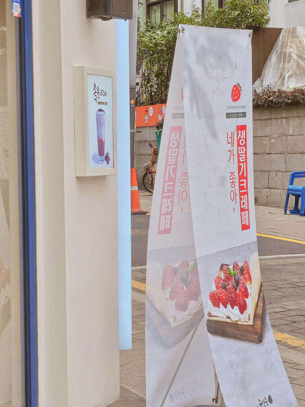 몇 년 전에 크레페를 먹고 싶어서 익선동 포장마차에 크레페 맛집이 있다는 얘기를 듣고 방문했는데 반죽이 마치 완전 부침개..? 전 같은 느낌이라서 친구랑 너무 실망했던 기억이 있어요! 그리고 그 뒤에 한 번은 사당역 쪽에서 버스를 기다리다가 매표소(..?) 같은 곳에서 크레페를 파는 것을 발견해서 사 먹기도 했었네요 ㅎㅎ 하지만 다 제 기대에 미치지 못해서.. 서울 크레페 맛집을 검색해서 돌담콩에 방문했답니다! 홍대에 있는 달꽃크레페랑 고민하다가 돌담콩을 먼저 방문해 봤는데 나중에는 달꽃크레페도 가보려고요!