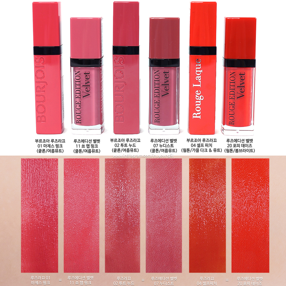 이제는 퍼스널 컬러를 고려하여 색조 제품을 구매하시는분들이 많아졌습니다. 저는 어릴 때는 정말 다양한 메이크업을 시도해봤는데 퍼스널 컬러를 알난뒤로는 제 퍼스널 컬러에 벗어난 색조는 손이 잘 안갑니다. 부르조아는 루즈라끄 & 루즈에디션 벨벳 전제품은 퍼스널 컬러 전문 기관 컬러즈에 의해 웜톤 쿨톤이 상세하게 나누어져 있습니다. 그래서 톤에 맞는 립제품 선택이 용이한것이 장점입니다.