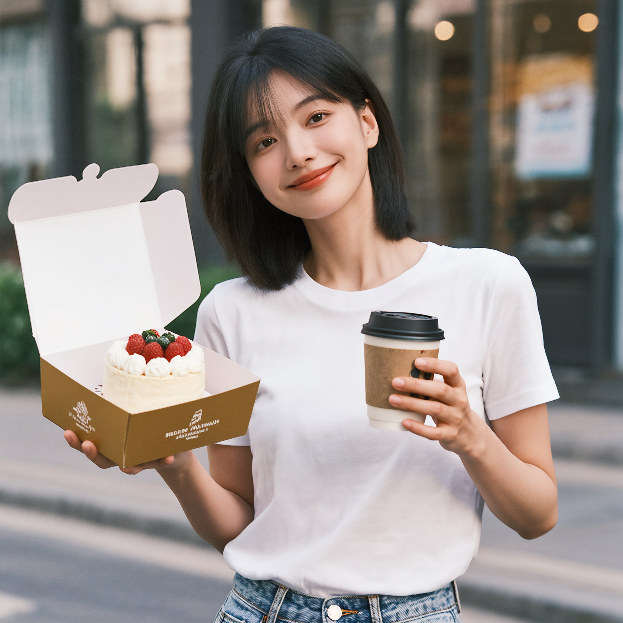 한 손에는 3만원짜리 미니케이크, 다른 손엔 2천원 짜리 편의점 커피처럼