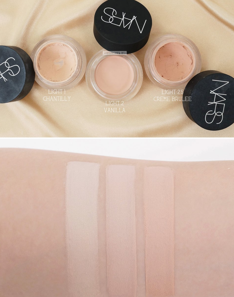 먼저, 나스 컨실러 봉타입으로 눈가 입가를 커버해 줍니다. 얇게 발리고 밀착력이 좋아 피부가 얇은 부위에 바르기 좋습니다. 이러한 특징 덕분에 다른 제품에 비해 스킬 필요 없이 초보자분들이 사용하시기에도 좋습니다. 그다음 소프트 매트 컴플리트(팟타입)으로 나머지 부분을 커버해줍니다. 팟타입은 양조절이 중요합니다. 자칫하면 두껍다고 느껴지실 수도 있습니다 그래서 저는 브러쉬를 사용해서 최대한 커버해야 할 곳만 얇게 펴 발라주고 있습니다. 마지막 단계에서 사용할 파운데이션이 커버력이 좋다면 점, 잡티와 같은 국소부위만 가리는 용도로 사용합니다. 만약에 커버력이 약한 편이라면 컨실러의 양을 늘리고 파운데이션은 톤을 균일하게 맞춰주는 정도로만 사용합니다.